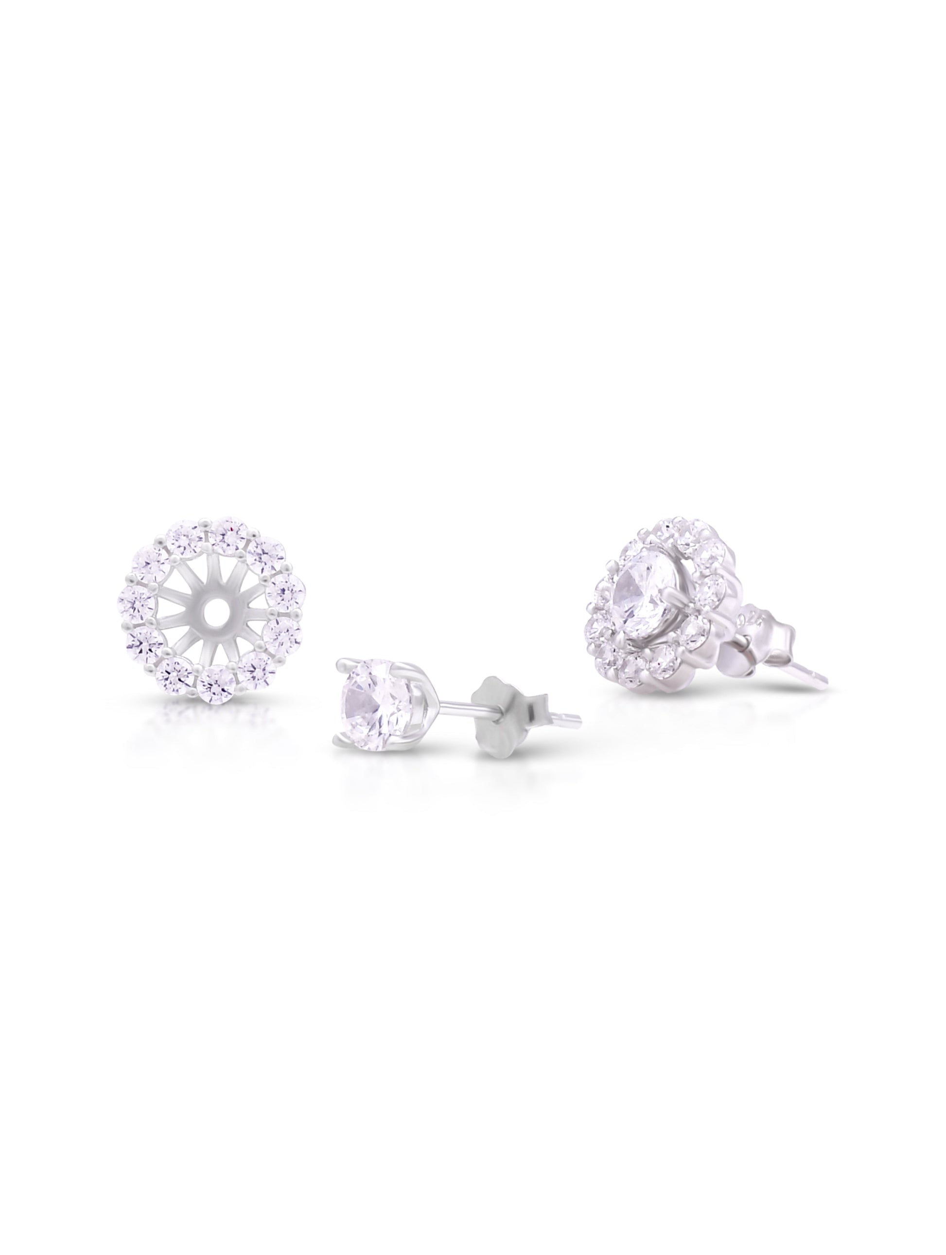 Upgrade your everyday style with this elegant 3-Pair CZ Diamond Stud Earrings Set, featuring three beautifully crafted stud designs — a classic solitaire, a floral halo, and a cage-style crystal stud.